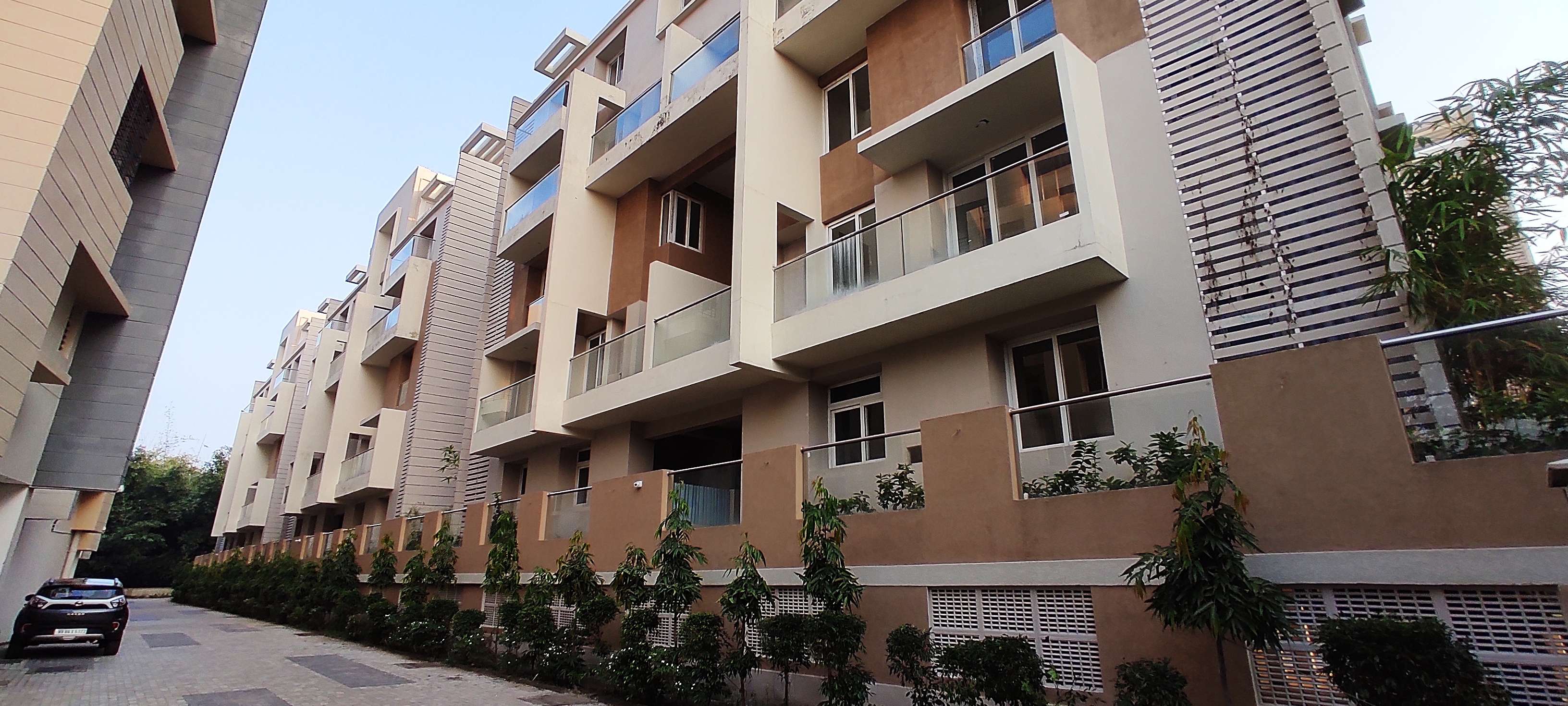 The apartments feature graceful tree-lined walkways, castle-like houses with Private Terrace/Garden, premium Clubhouse, and Swimming Pool. The project is strategically located, just 10 - 15 minutes drive to key locations such as Eco Space, Gitanjali Park, City Center, and the Airport.